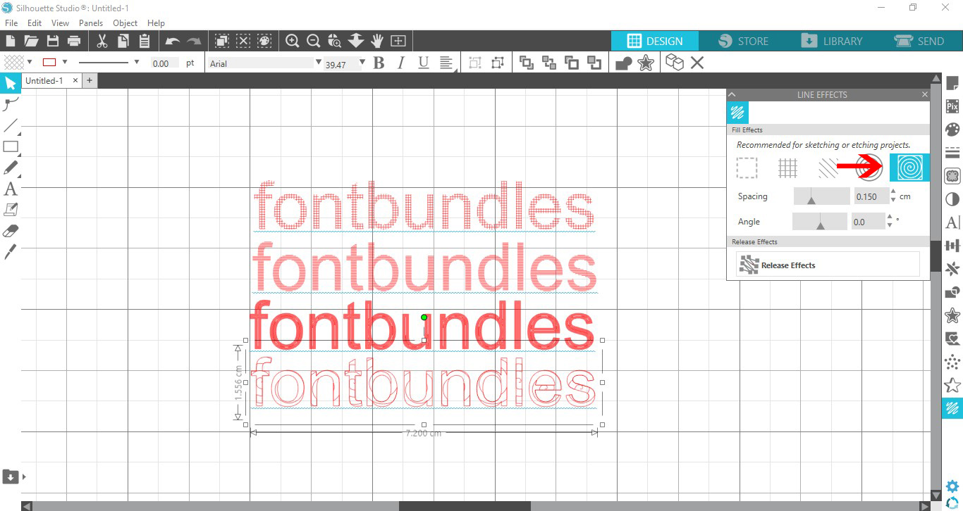 The last icon adds a spiral fill and can be the quickest option when using the Foil Quill. Unlike the other fill effects, this option draws a single line fill in a spiral.