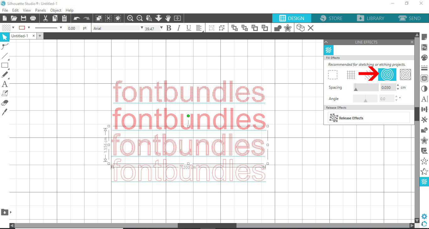The fourth icon adds a circle line effect. Hover your cursor over the icon and it will read “Add a concentric effect to the shapes”. The circle line effect is also great for creating a pattern fill. Adjust Spacing if needed.