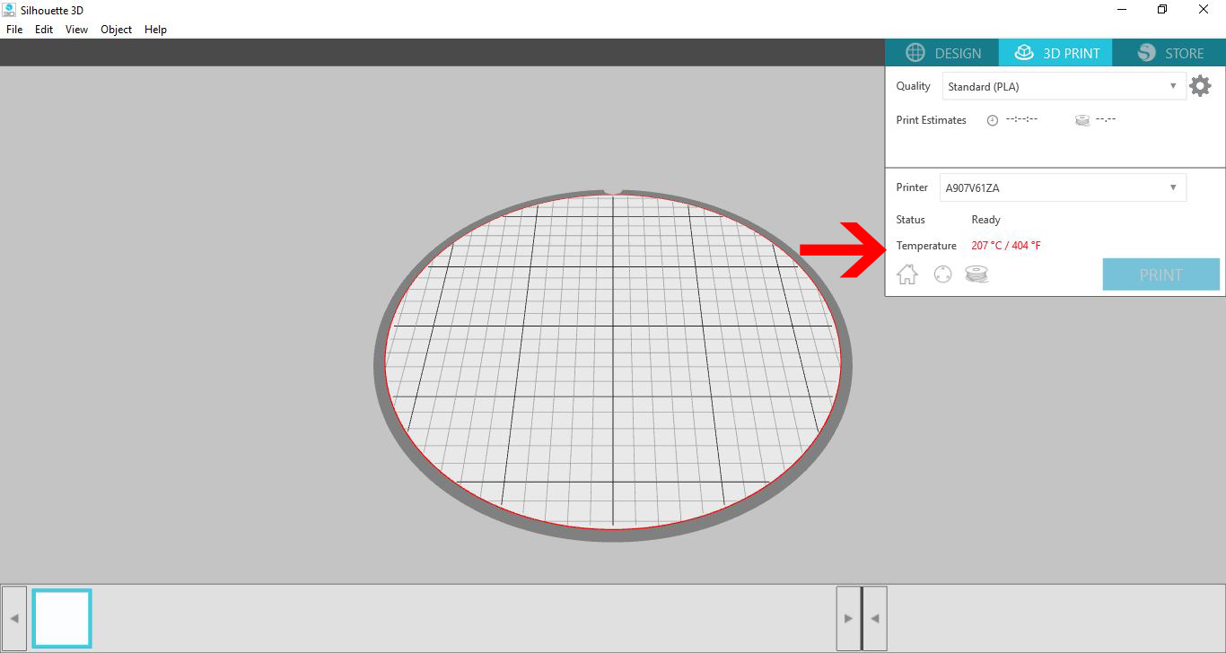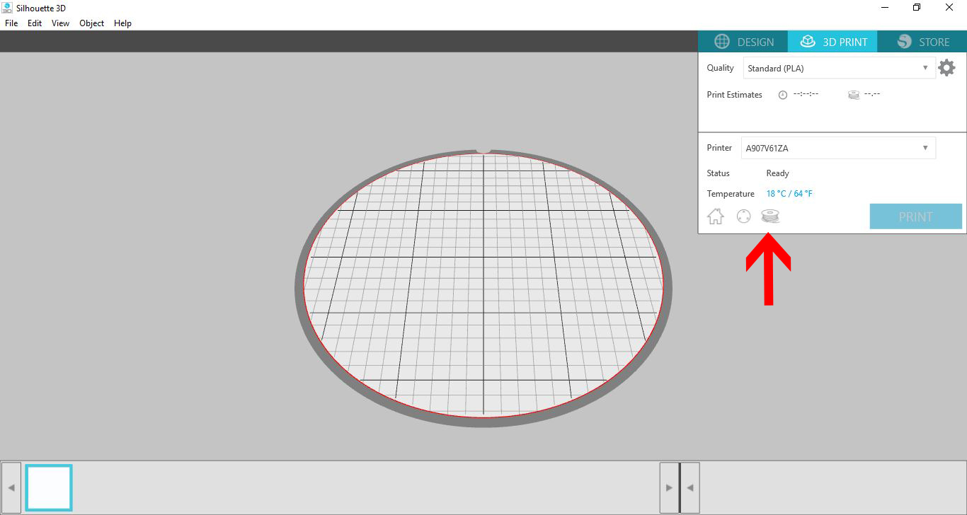 To load the filament we need to access the Filament icon. Click on Silhouette Alta software to open it. At the top of the screen click on the 3D print icon.