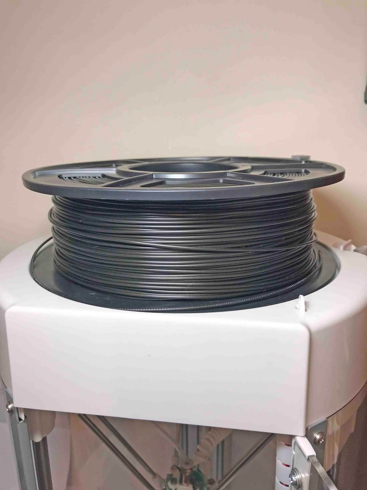 As seen in the image below, the filament is threaded through the loop on the machine.