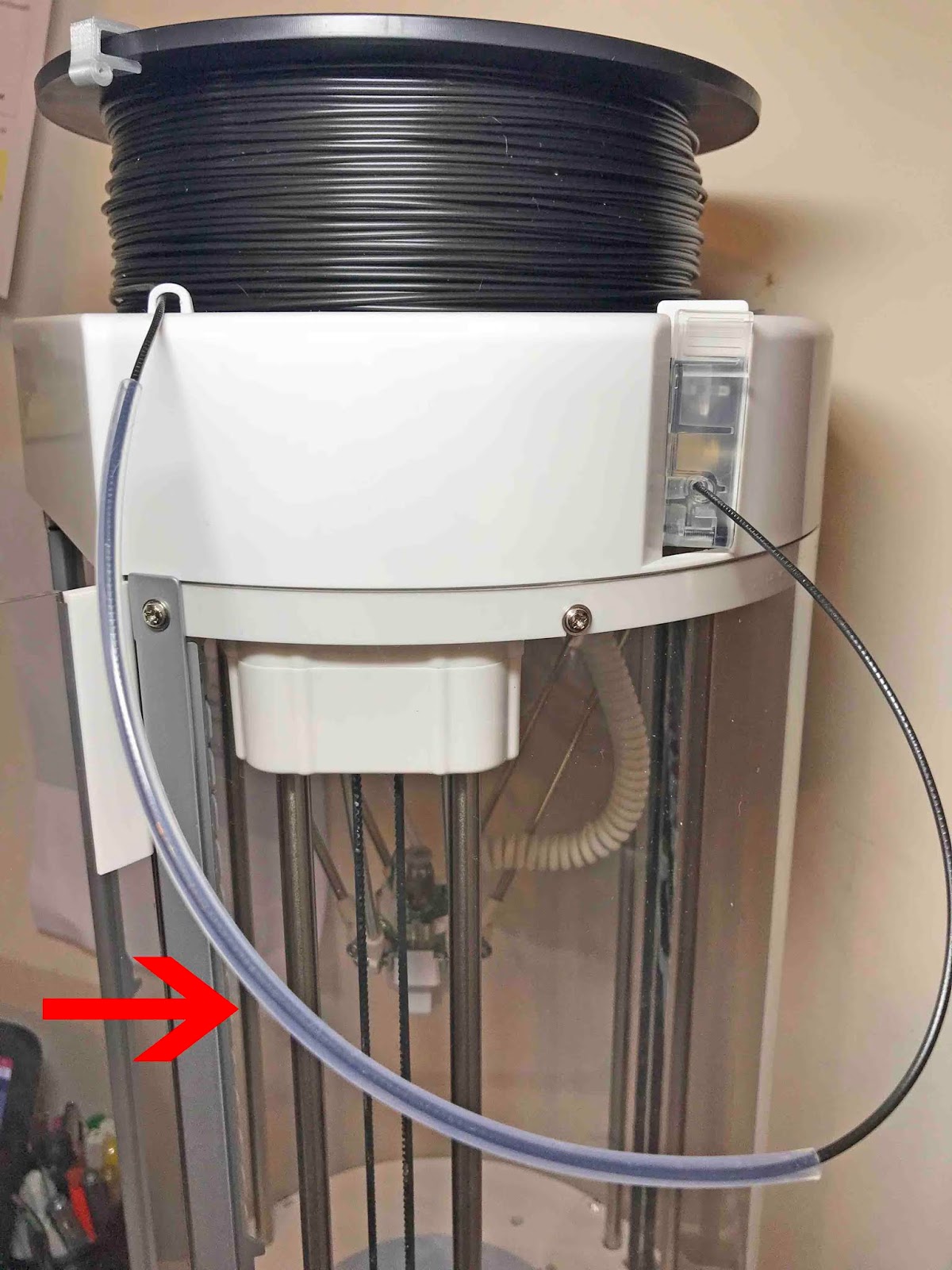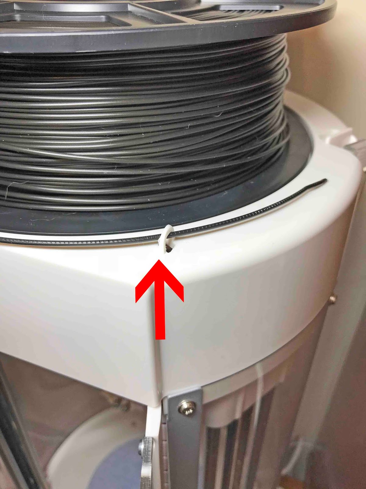 *I would also recommend to have the clear tube sitting through the filament loop as well. I recommend this as after only having this machine for several weeks, the filament is wearing the loop down. By placing the plastic tube through the loop this will avoid any wear on the loop.