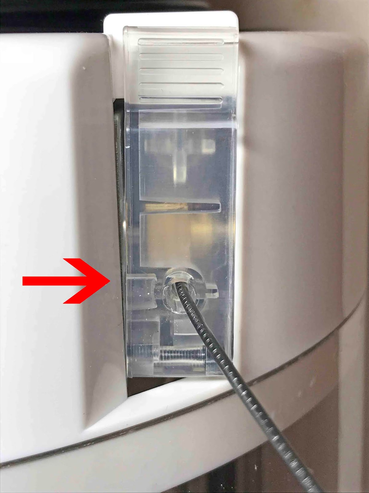 While holding the lever, keep pushing the filament in until you can see it in the tubing inside your machine.