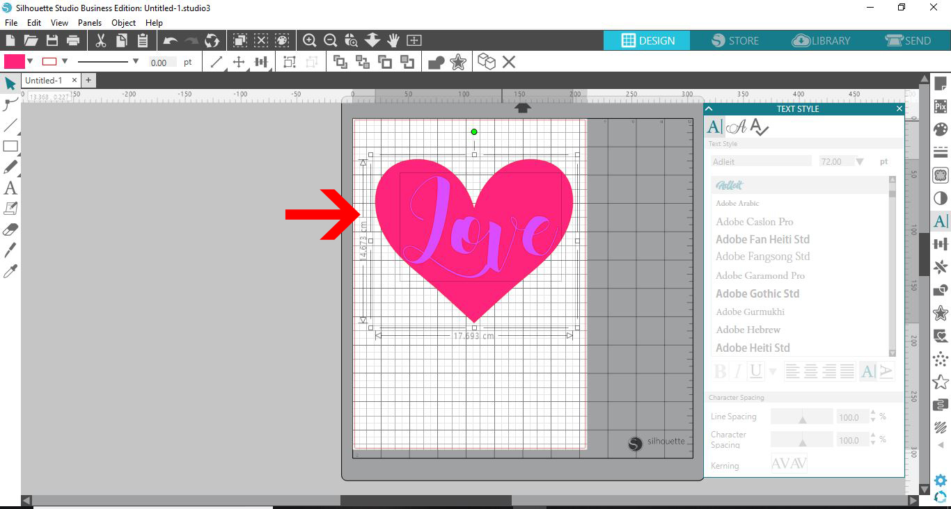 Any Calligraphic font can be used for this tutorial. We also used a Heart Flexi Shape for our design. If you would like to know more, be sure to check outhow to use Flexi Shapes in Silhouette Studio.