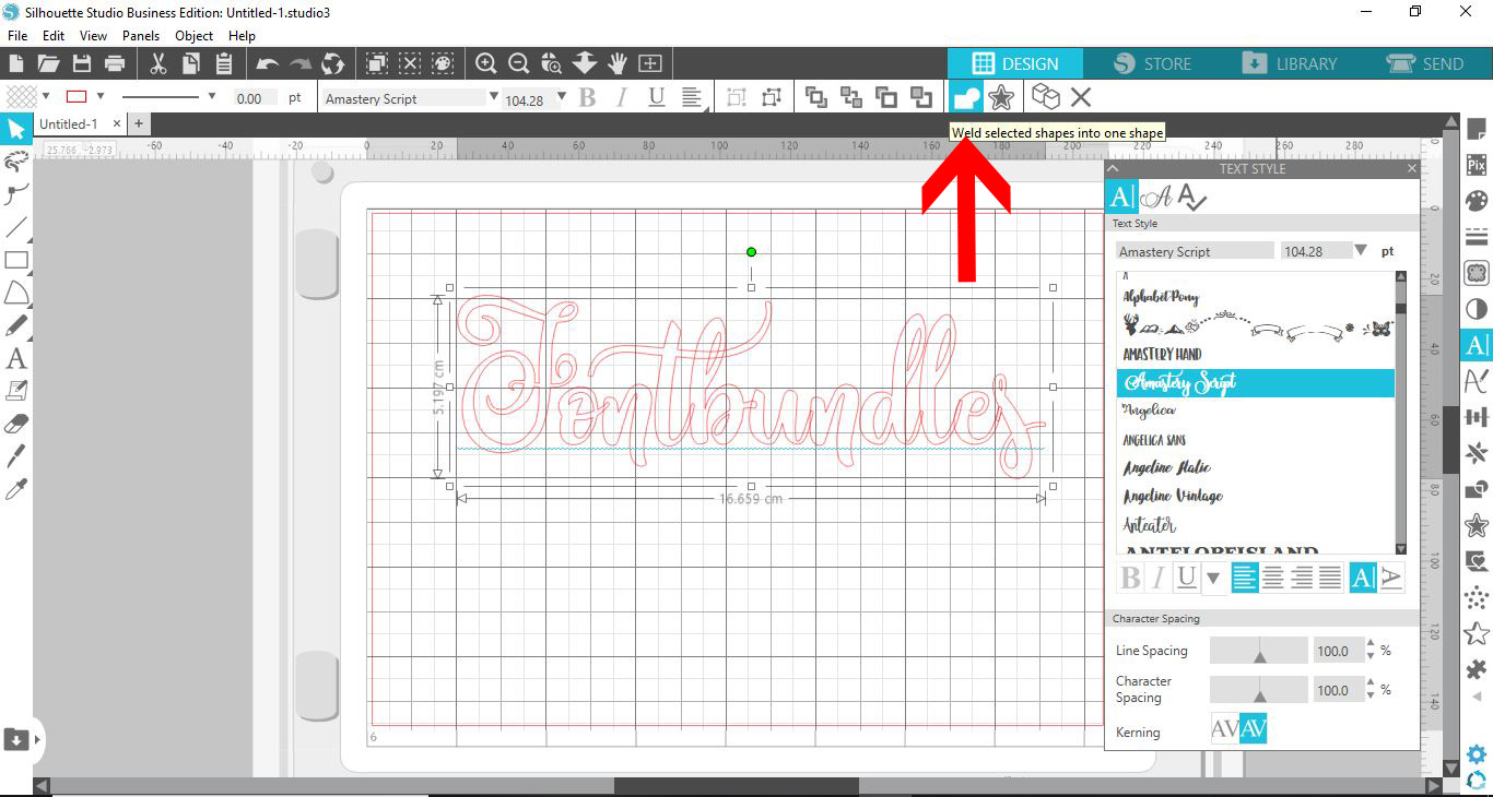 When working with fonts, some fonts will need to be welded due to overlapping. If needed, edit the text before welding. Once welded, you will not be able to change the text wording or font.