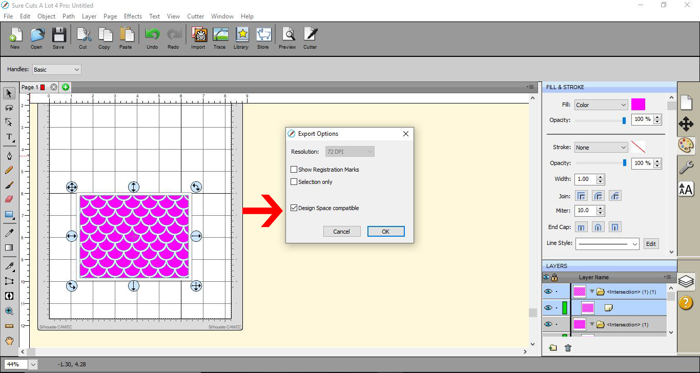 20- In the new window click on design space compatible and ensure the other boxes are unchecked. Click OK.