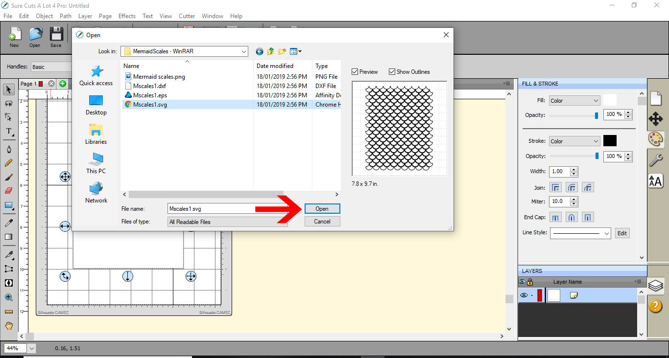 5- Select your file and click open. I am using Mermaid Scales from designbundles.net