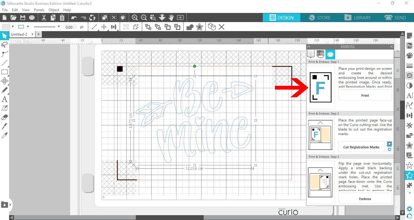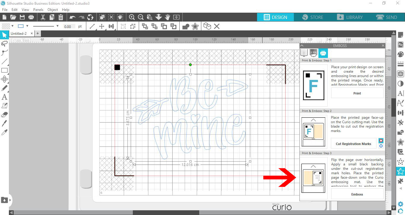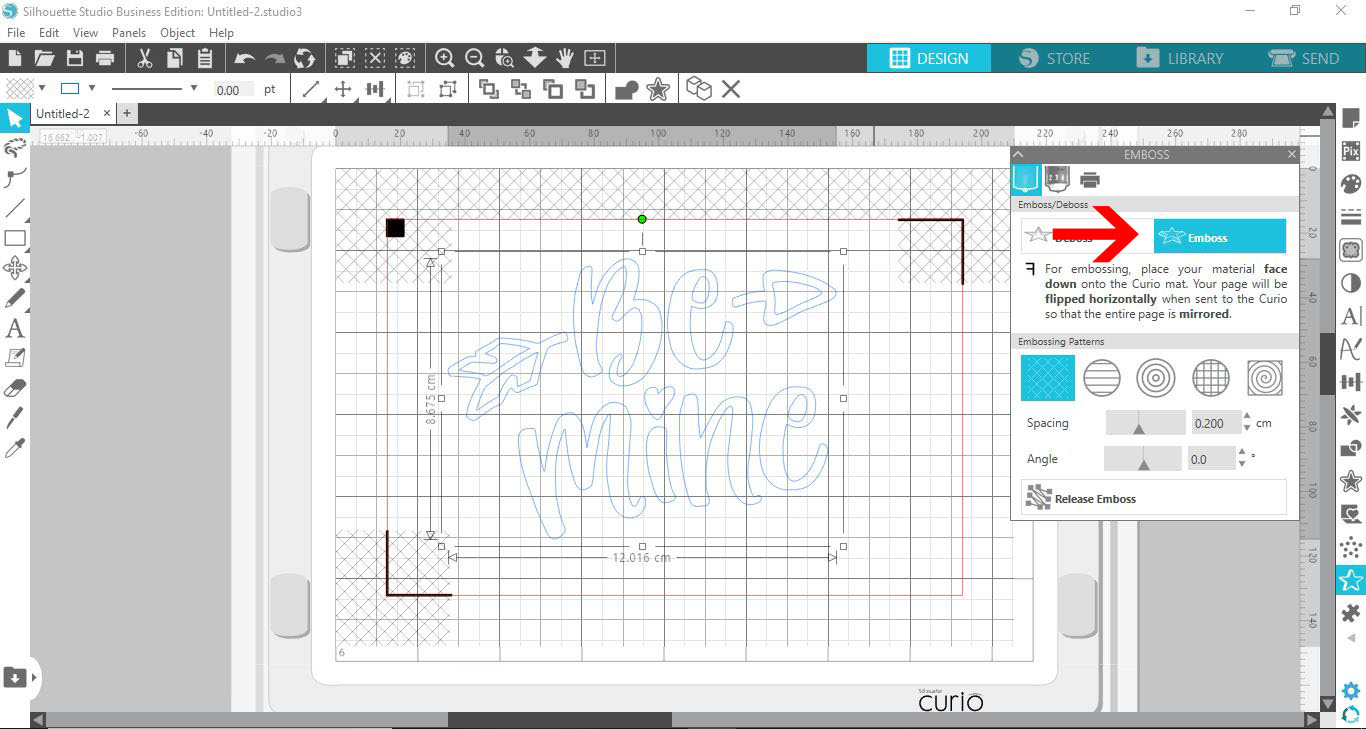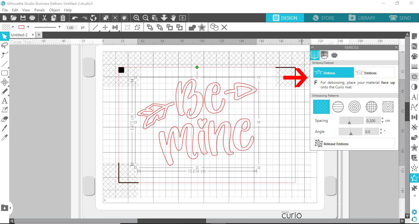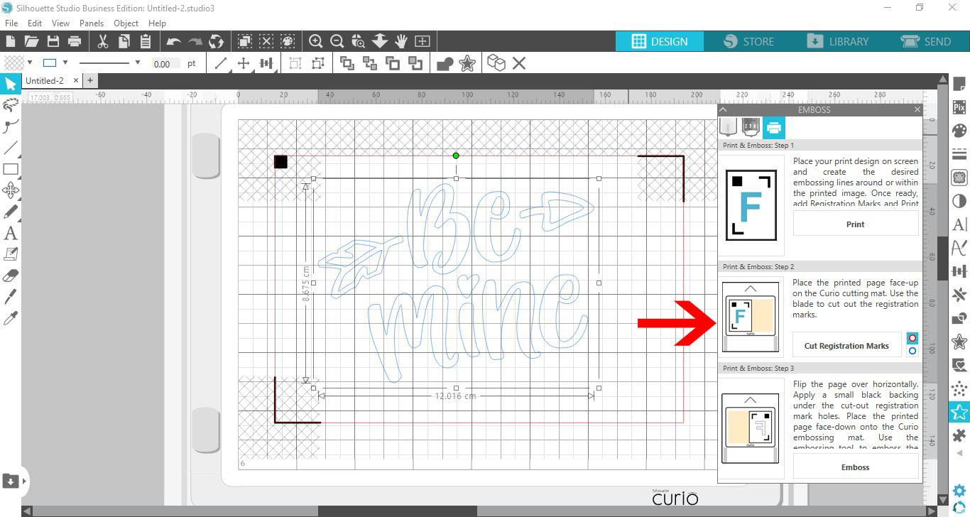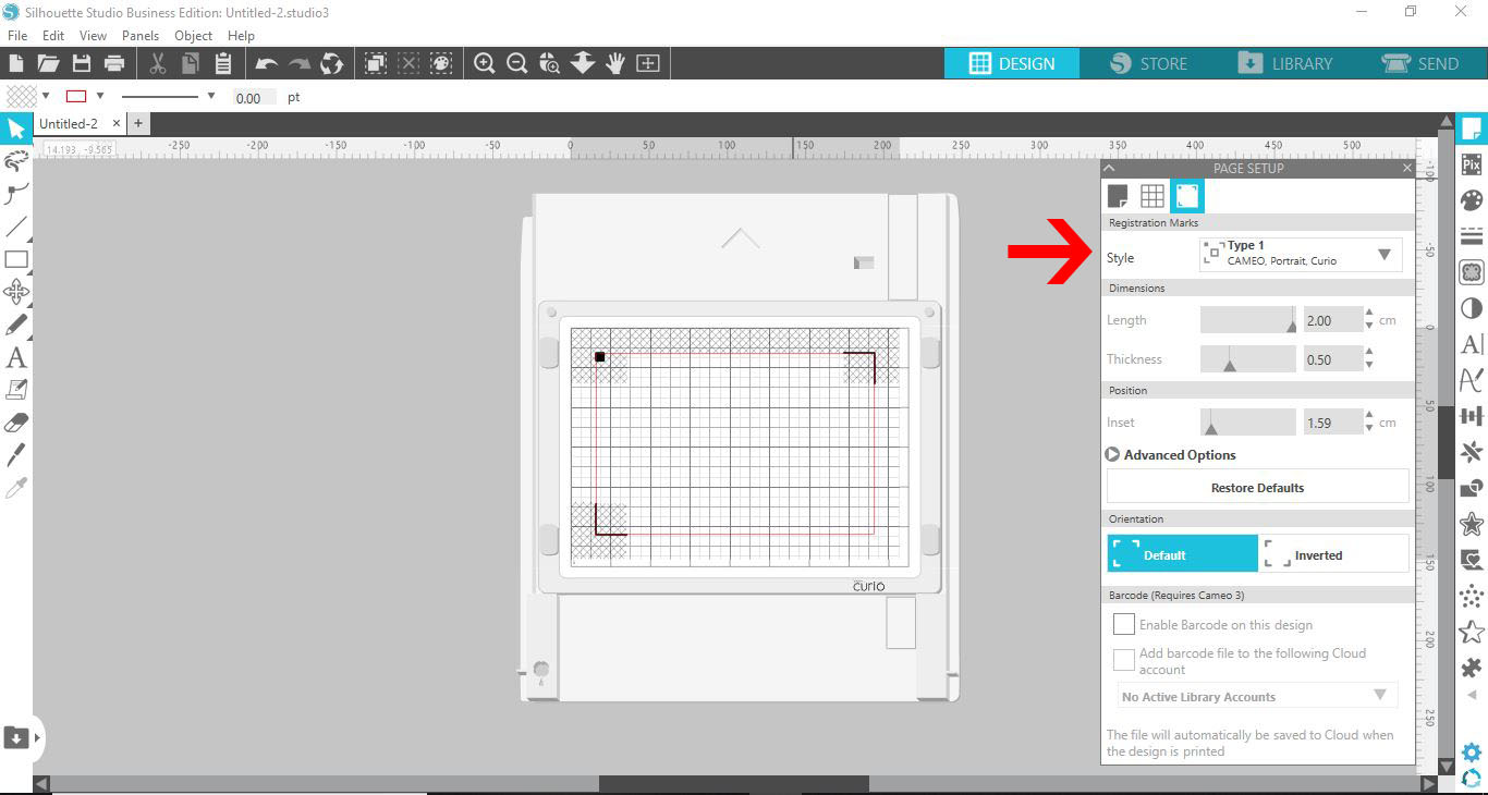 1- Open Silhouette Studio. Click on the cutting mat options and change to Curio. Change the size of the cut area to fit the curio mat.