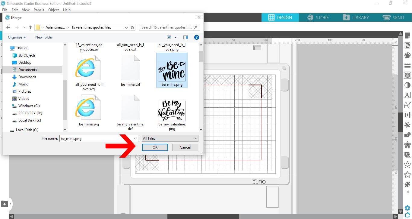 2- With the cutting mat and the size changed, you will see the curio mat appears on the design space.