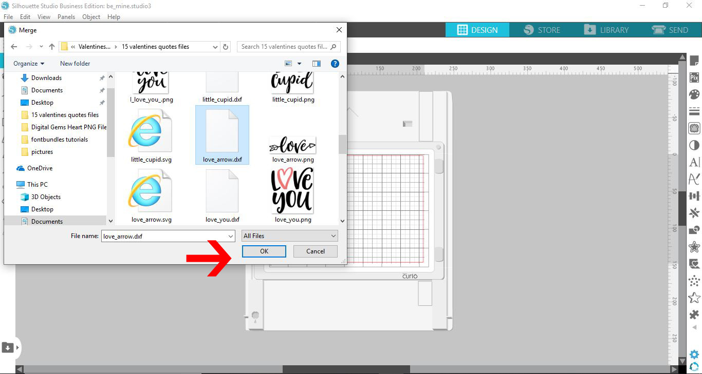 3- Select your file and insert. I am usingValentines Day Quotes SVG files.