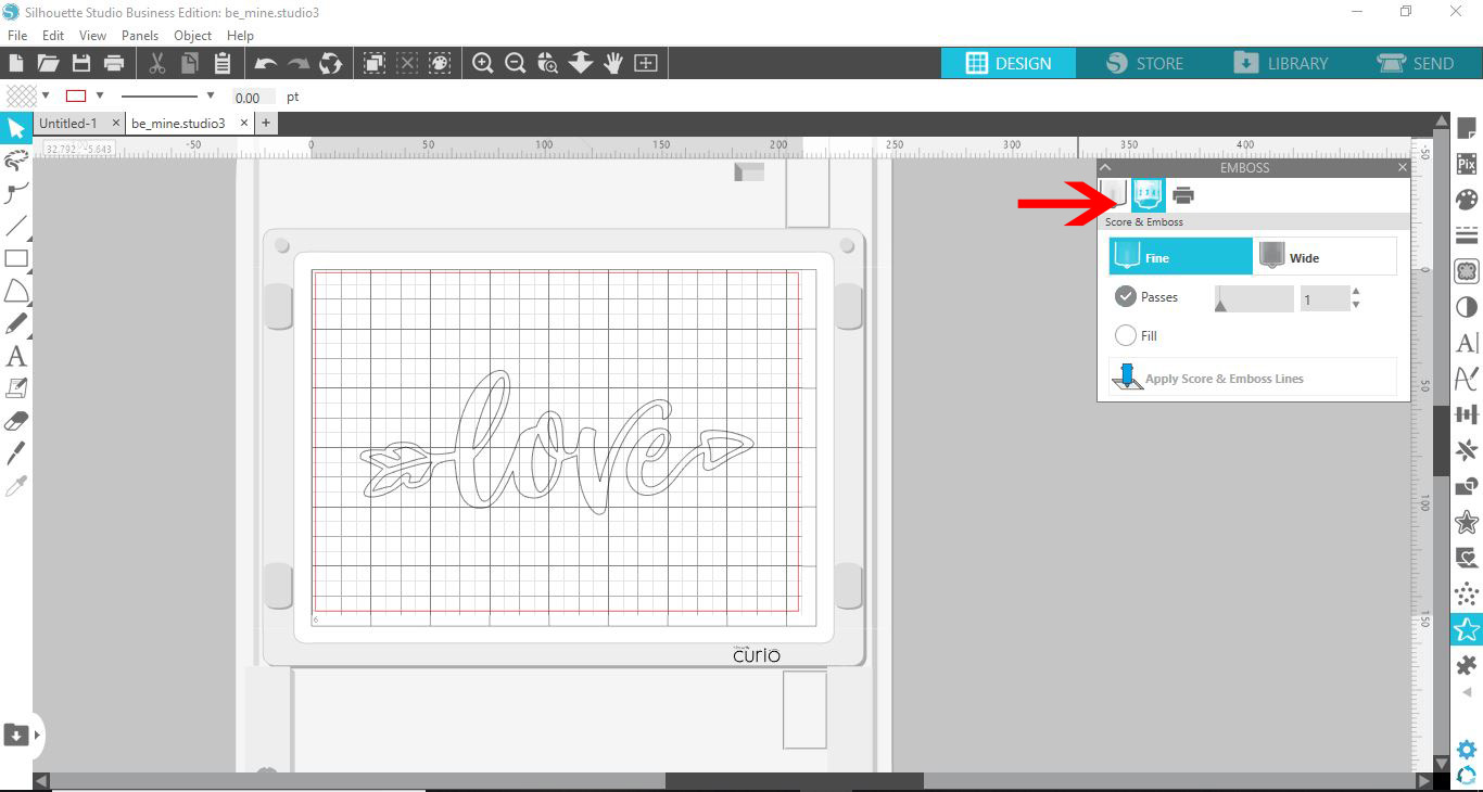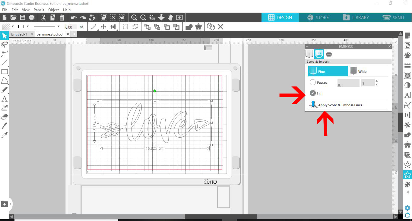 6- Check on the fill option. Then select the apply score and emboss line icon.