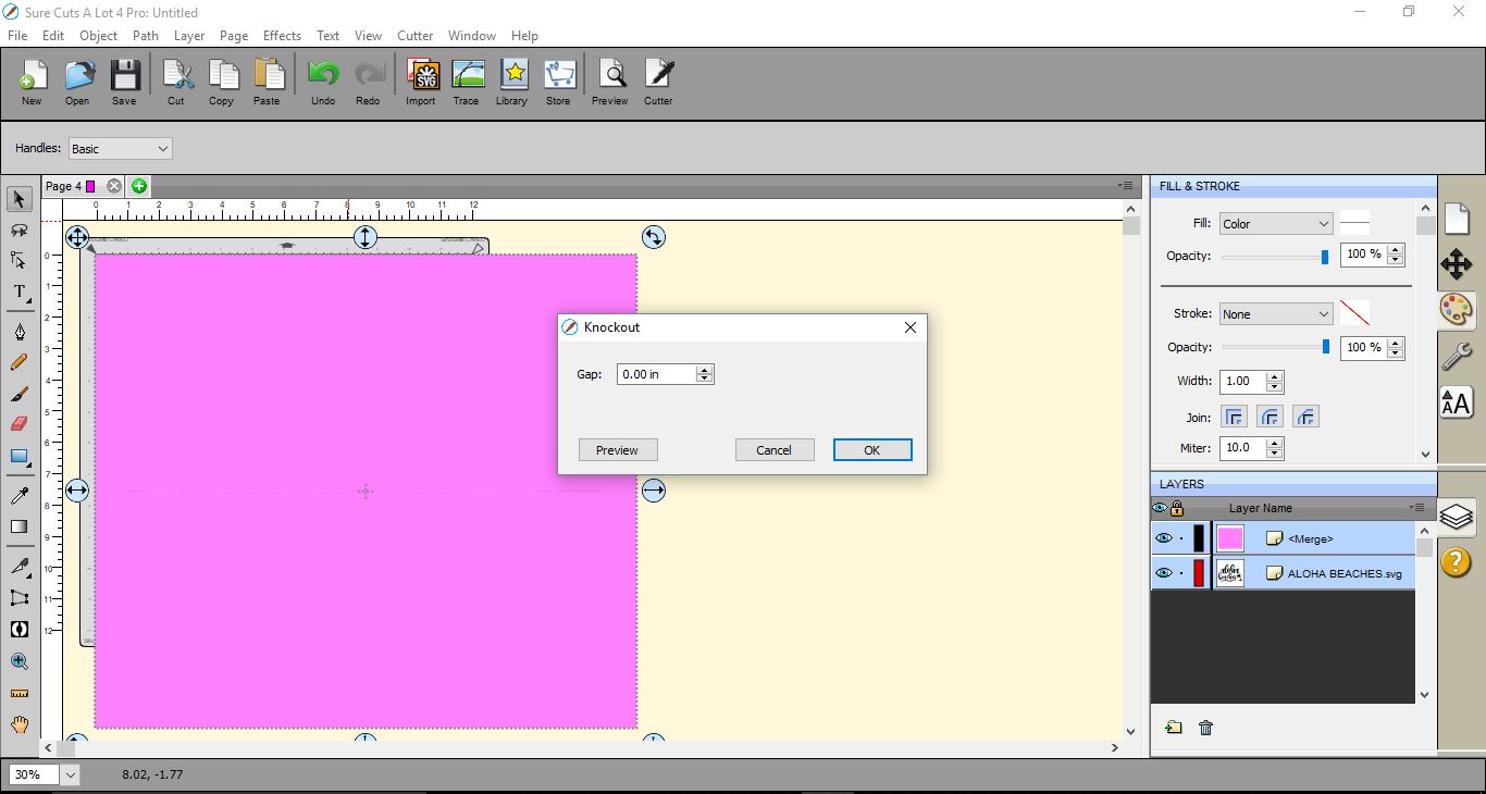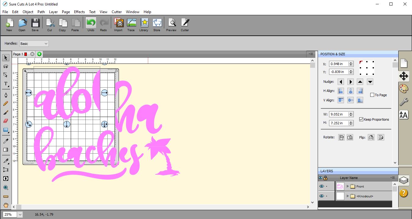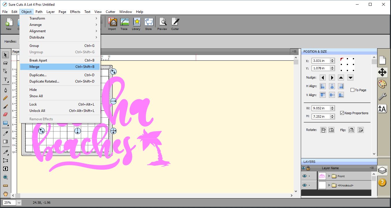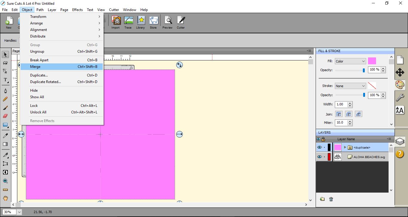 4- Resize the rectangle to fit just over a 1/4 of your design, and at the same time making sure the rectangle is smaller than your cutting mat size. Go to Object > Duplicate.