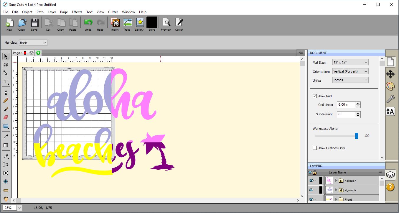 1- Open canvas workspace.Select the design you would like to cut. you can create your own, upload a SVG or use a preset design.2- Resize your design to the dimensions you need.3- Go to the shape icon and create a square.4- Resize the square to 1/4 the ...