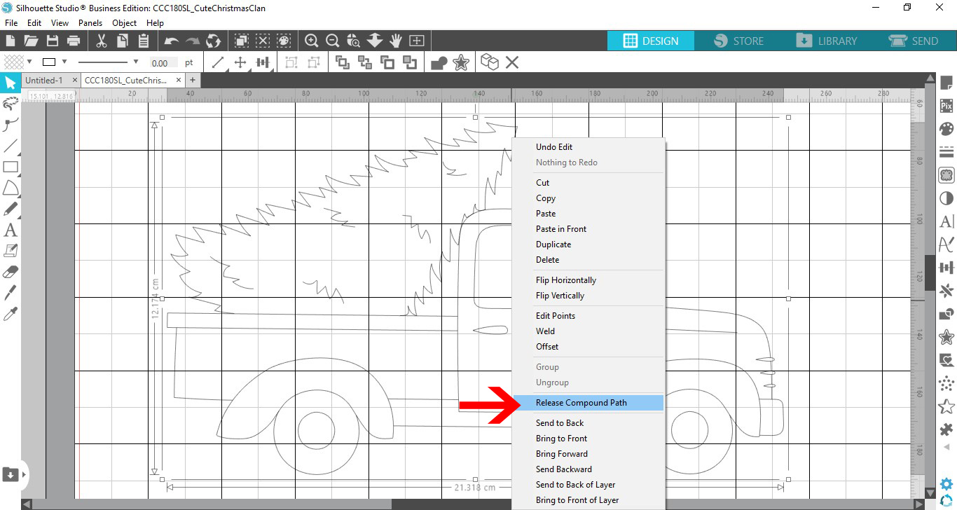 To create thicker lines we will be adding an Offset. With your design selected, right click and Ungroup your design. If you are unable to ungroup, then choose Release Compound Path.