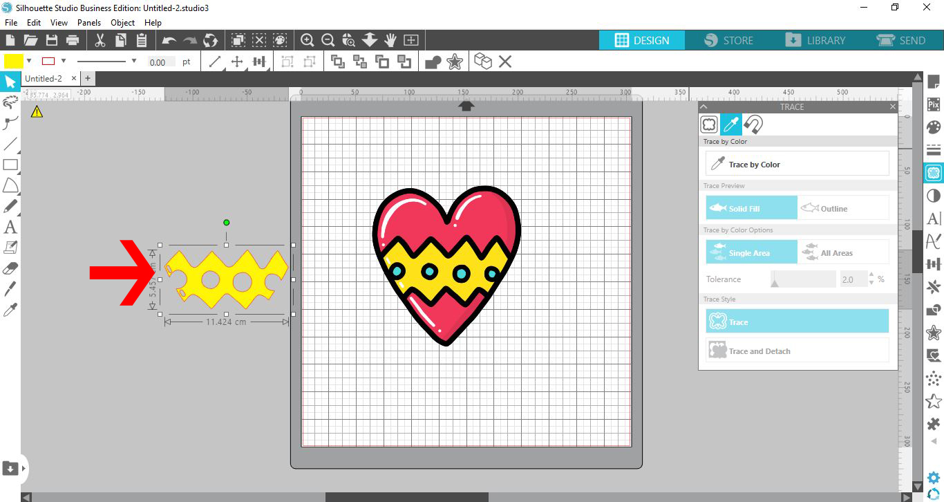 1- Open silhouette studio. Click on the file to open your design.2- Select the image you need to trace. it can be color or black.3- Click on the trace icon.4- Click on the select trace area.5- Select the whole image.6- The trace area will appear ...