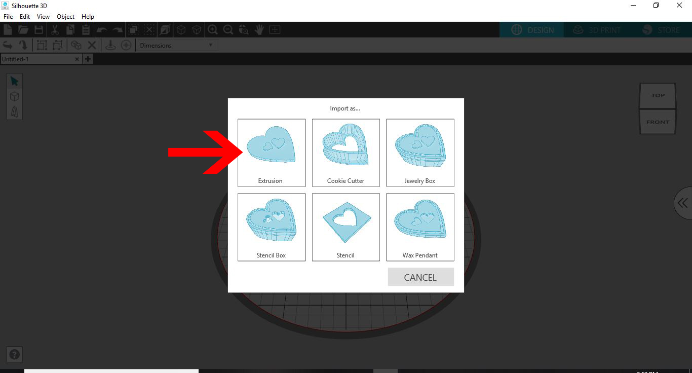 11- a new window will appear. this will determine what you convert your design to. I am picking extrusion.