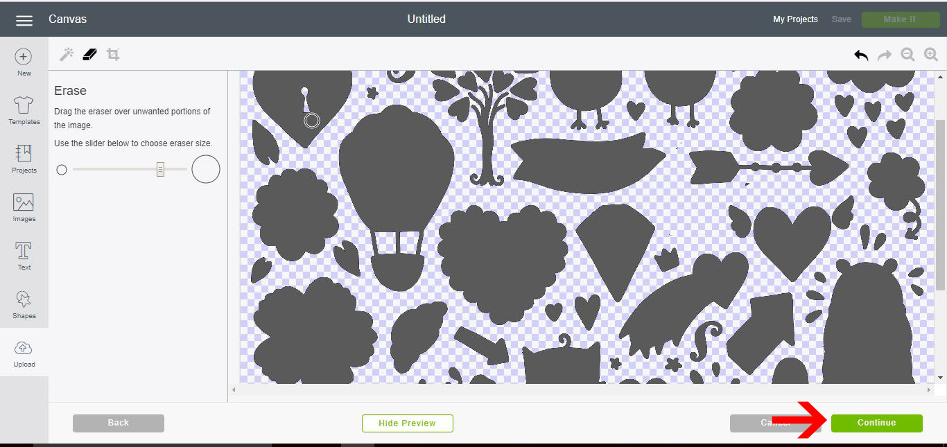 15- Check the silhouettes. Each one will be a cut line. Click Continue.