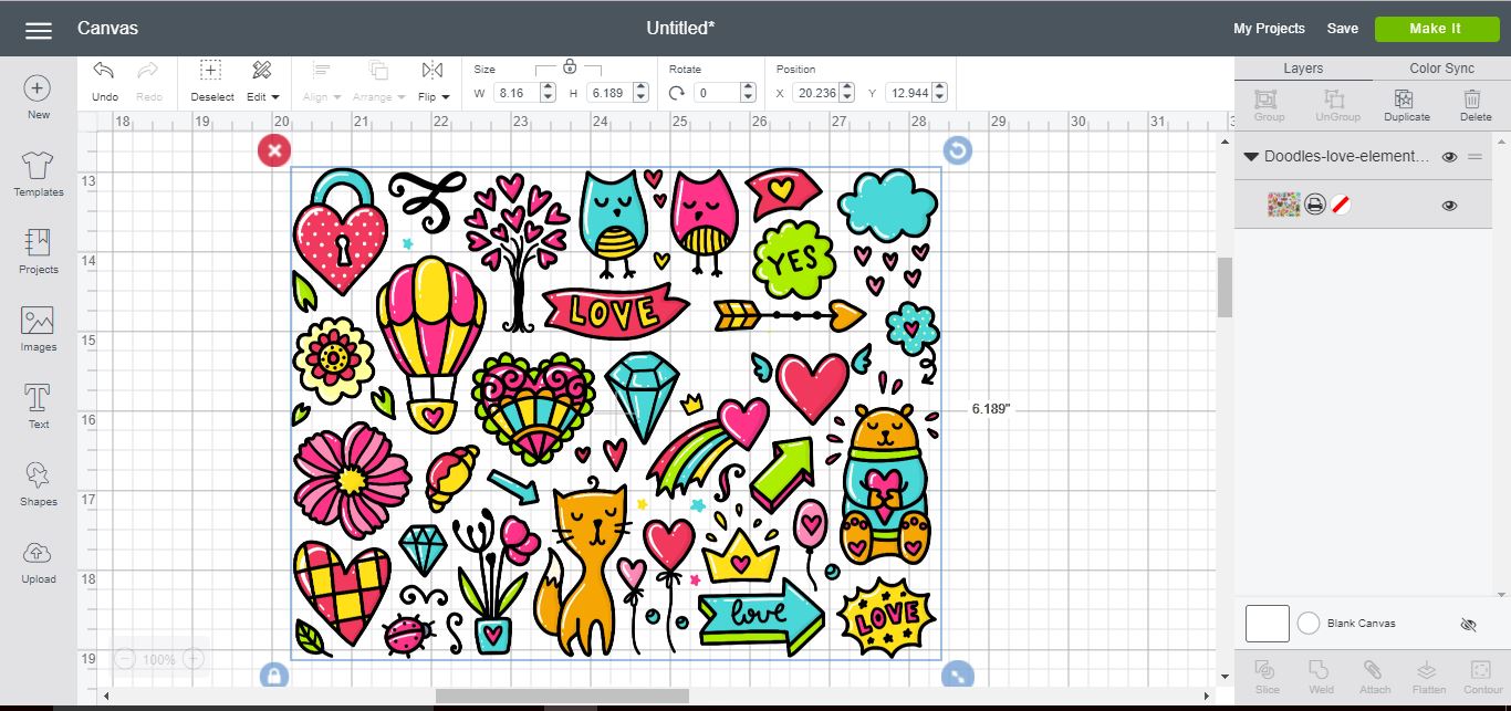 18- Your design will appear on your design area. Resize and then click Make It.