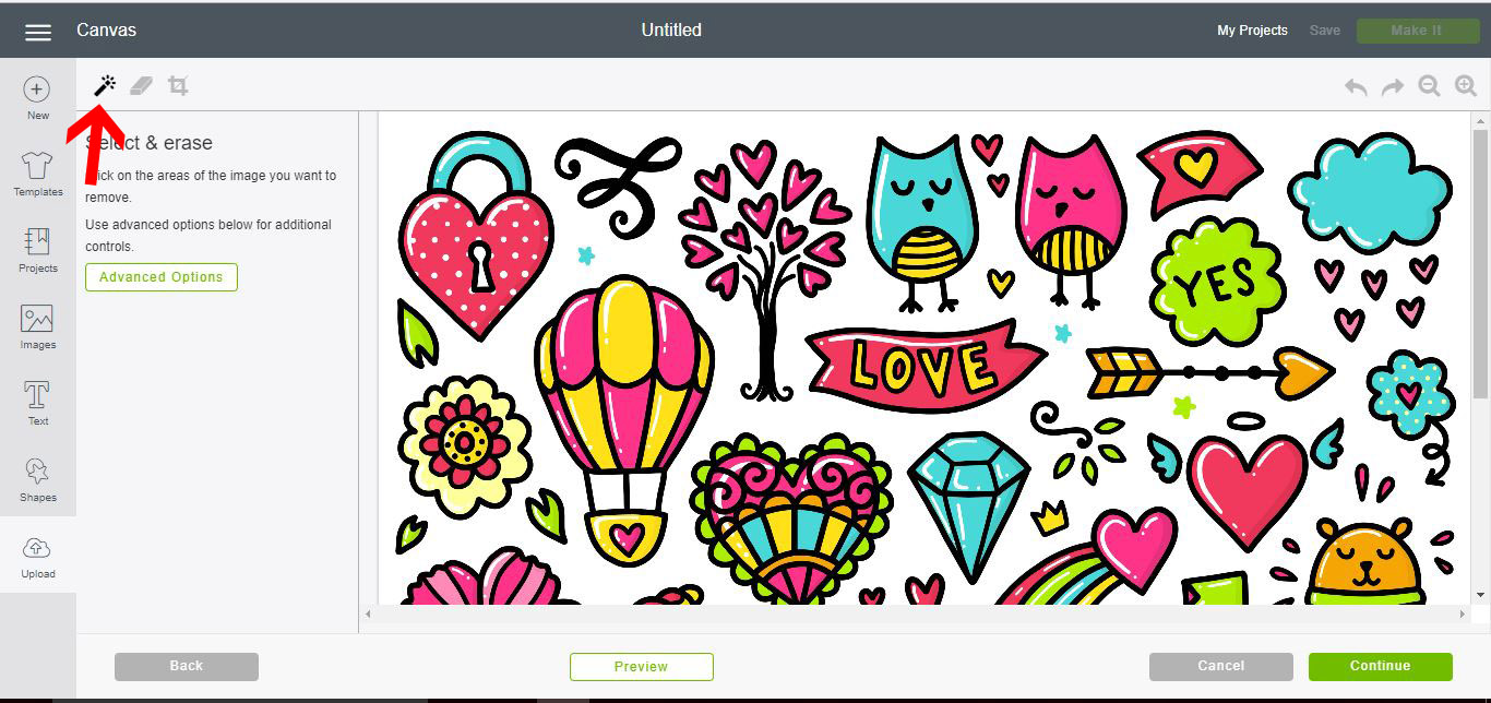 14- You can also use the eraser tool to remove any extra pieces you do not need. Once you are happy click on Preview.