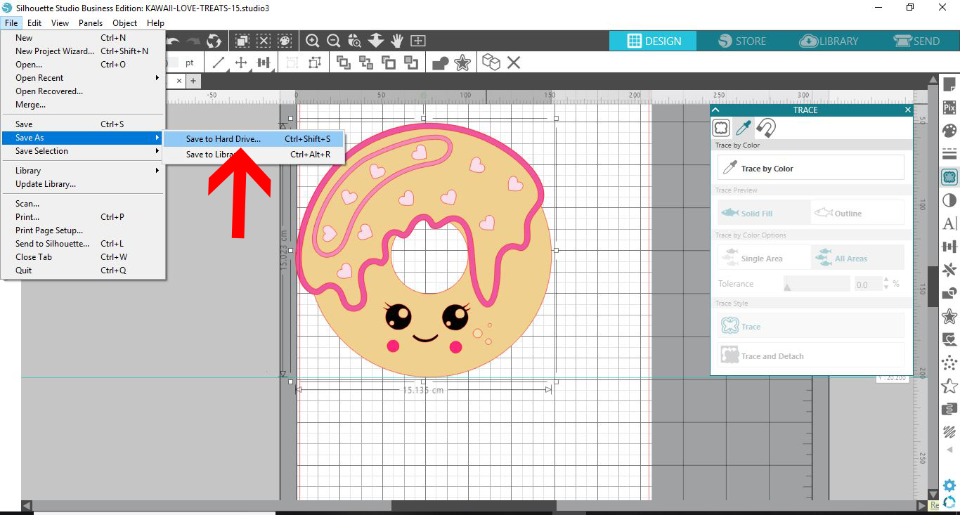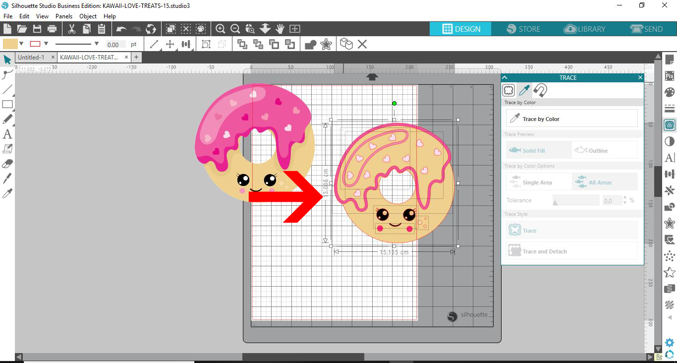 3- Select your PNG and then click on the trace icon. We need to trace the image as when you use a PNG file there are no cut lines. In the Silhouette studio software we can trace and make cut lines that will work in the silhouette alta software.