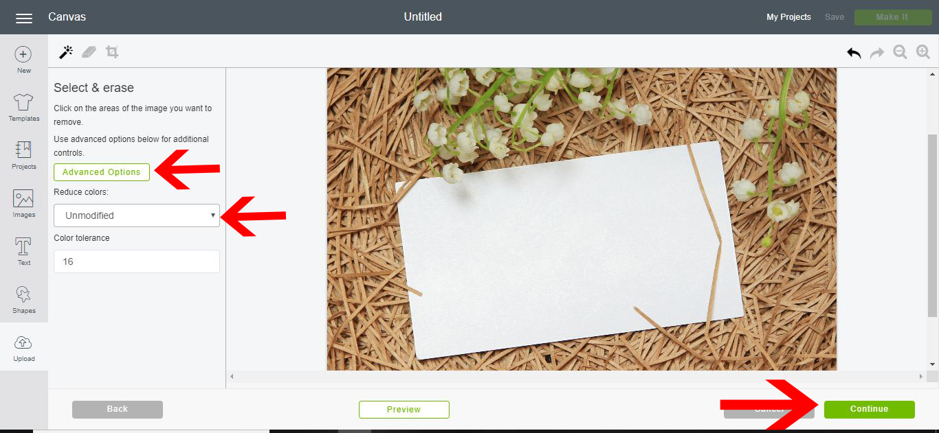 7- Select the advanced options. In the drop down box select unmodified. Click on continue.