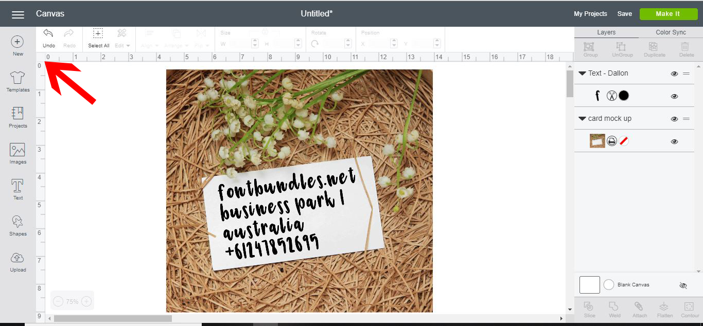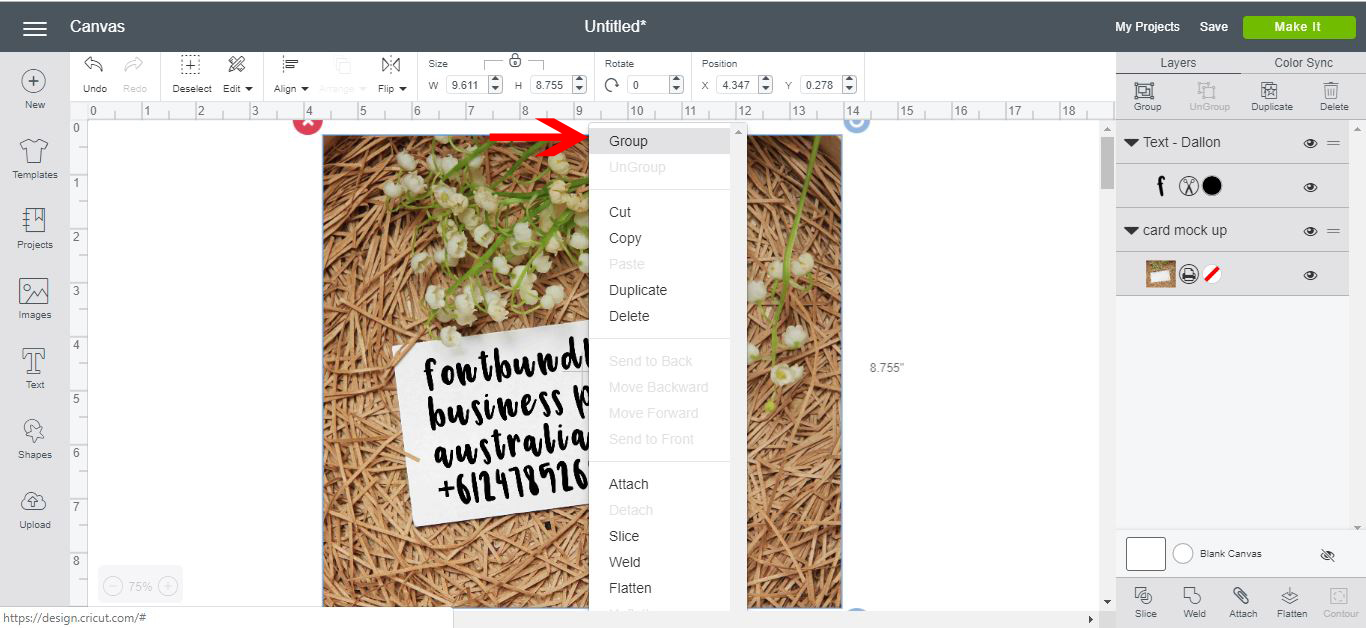 11- Your mock up is now on screen. Here you can use other designs to add to the mock up or you can add your text.