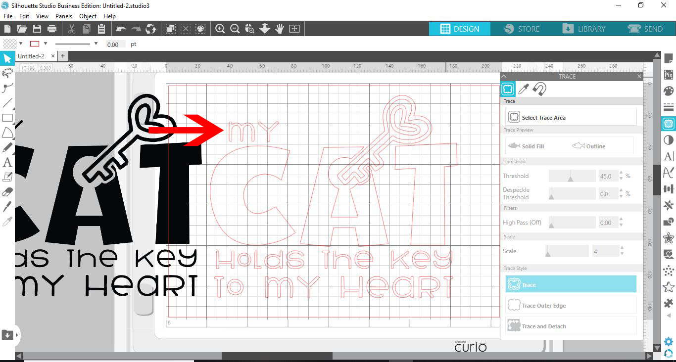 10-Your design will be traced and this will create cut lines. You can now delete the original design if you would like too.