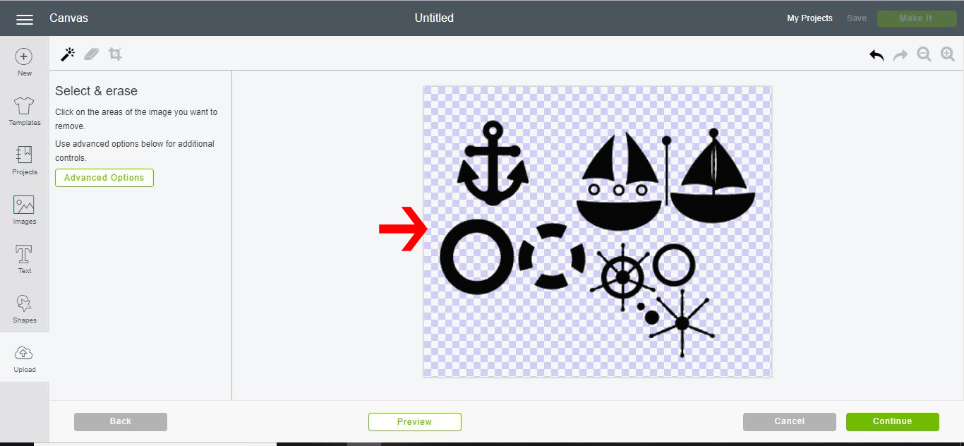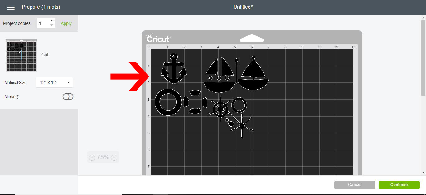 16- The silhouette file is now in the Cricut design space work area. Click on make it.