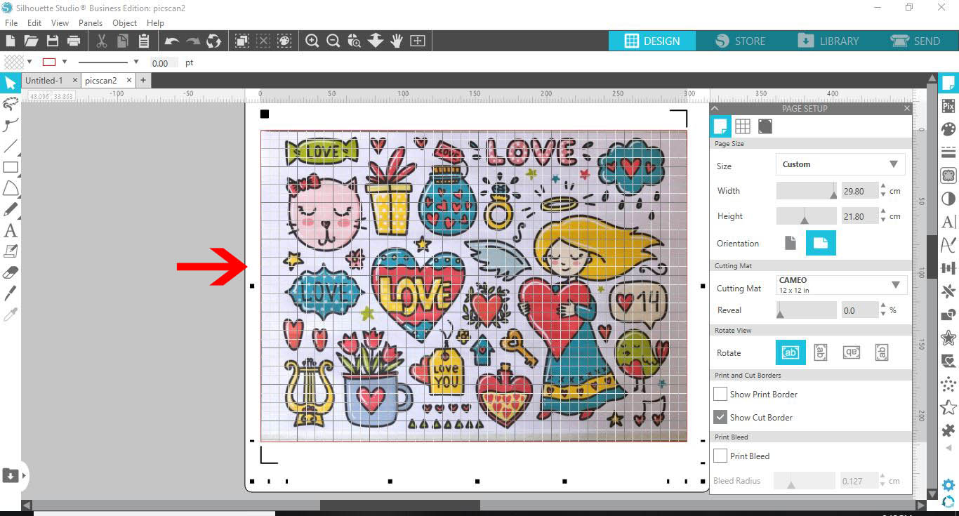 Your designs, when printed or hand drawn, are placed onto the Pixscan mat. A photo is taken of the mat and loaded into the Pixscan option. So let us begin by opening Silhouette Studio.