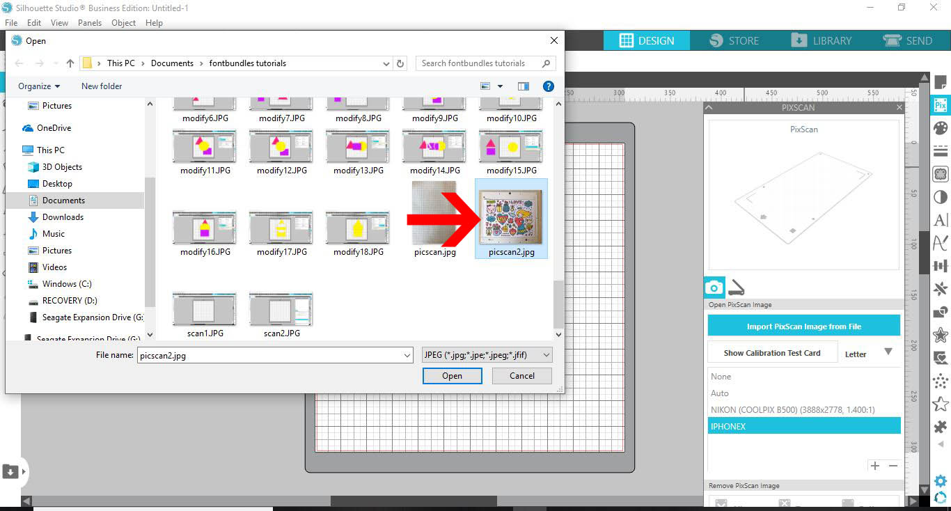 Place the designs that you want to cut out onto your Pixscan mat. Take a clear photo of the mat and images. It may help to take more than one photo just in case. Import the photos into a file on your PC.