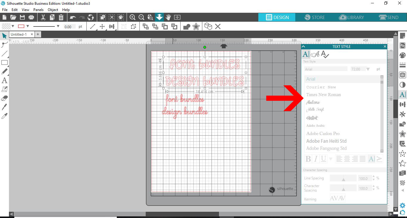1- Open up Silhouette Studio (free version) Click on the text icon.2- Type your text.3- Select the font you want to use. I am using Cheesy Grits font from fontbundles.net4- Once you are happy with your text Go to File - Save as - Save to ...