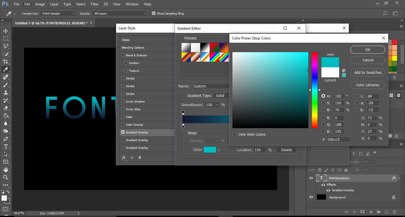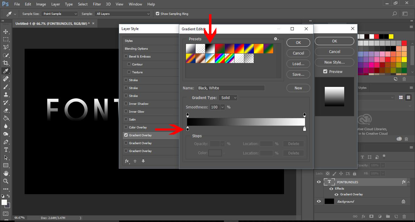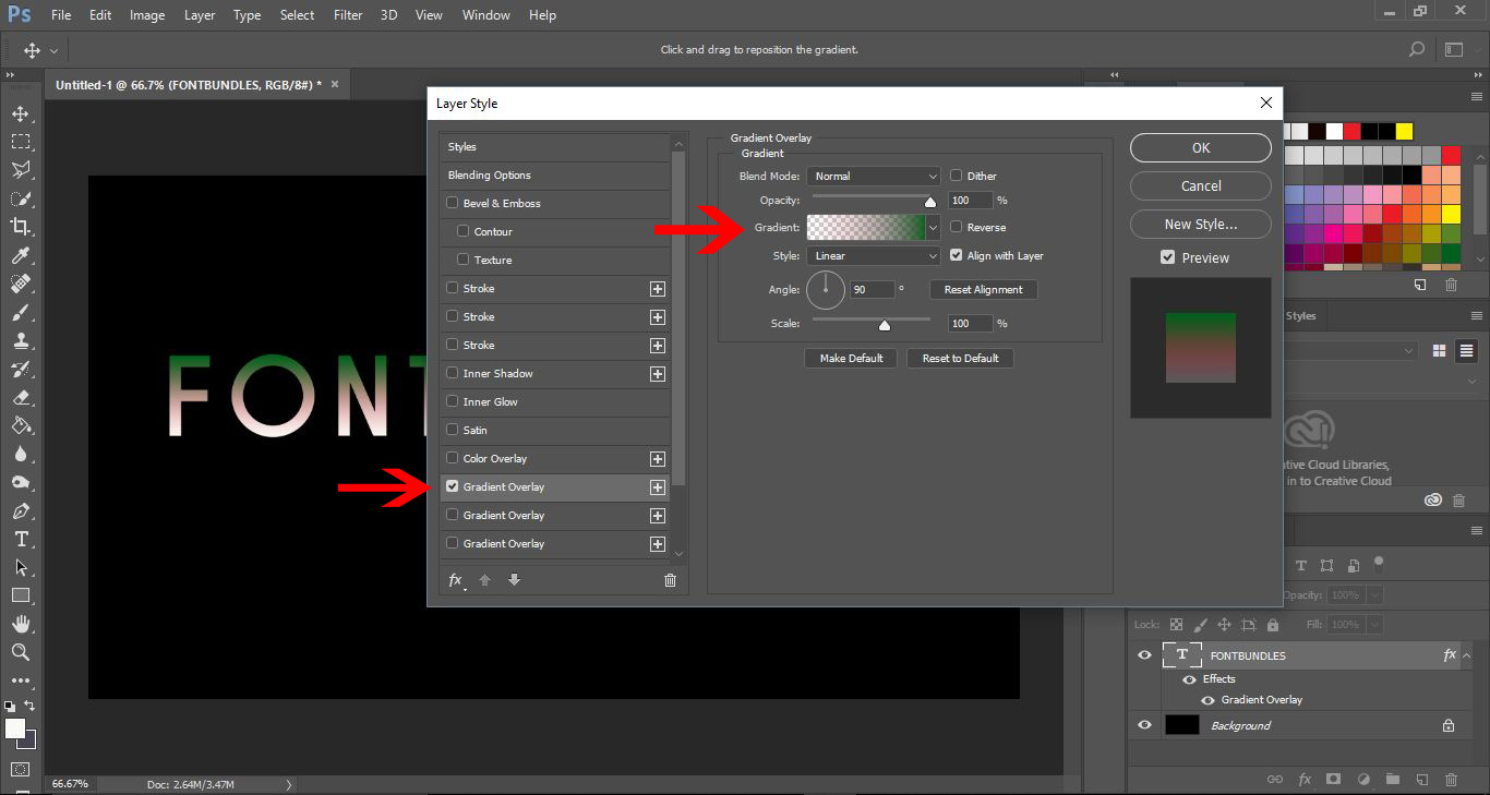 8- Select gradient overlay, then click on the gradient bar.