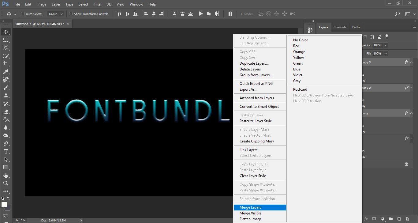 19- Right click again and this time select merge layers.