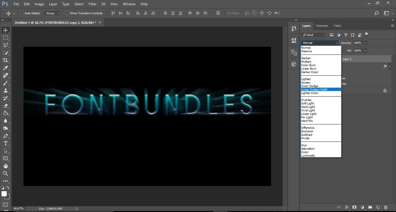 22- With the merge layers still selected change the blend mode to dodge(ADD).