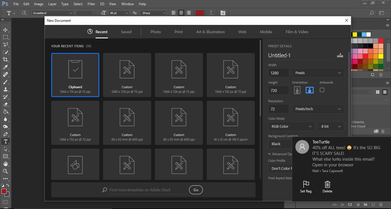 3- When creating the new file ensure that the background colour is set on black.