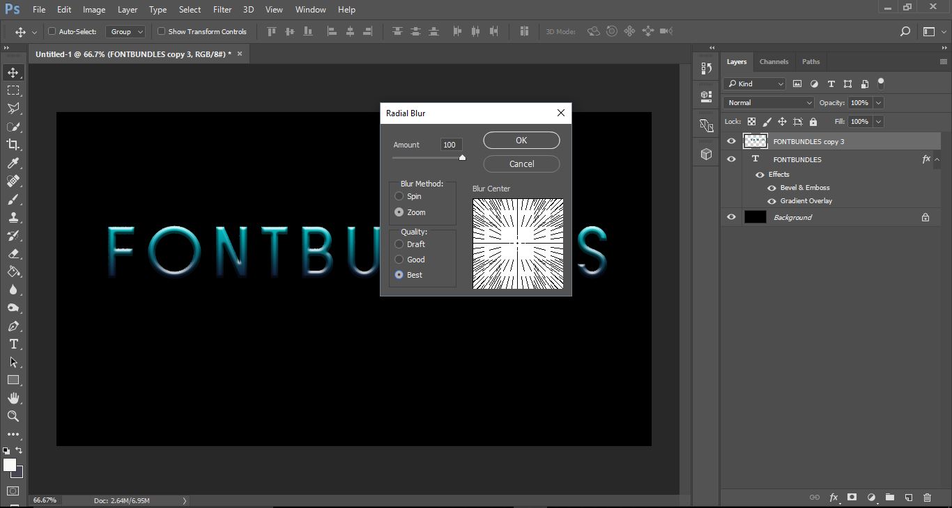 Light burst text effect in Photoshop