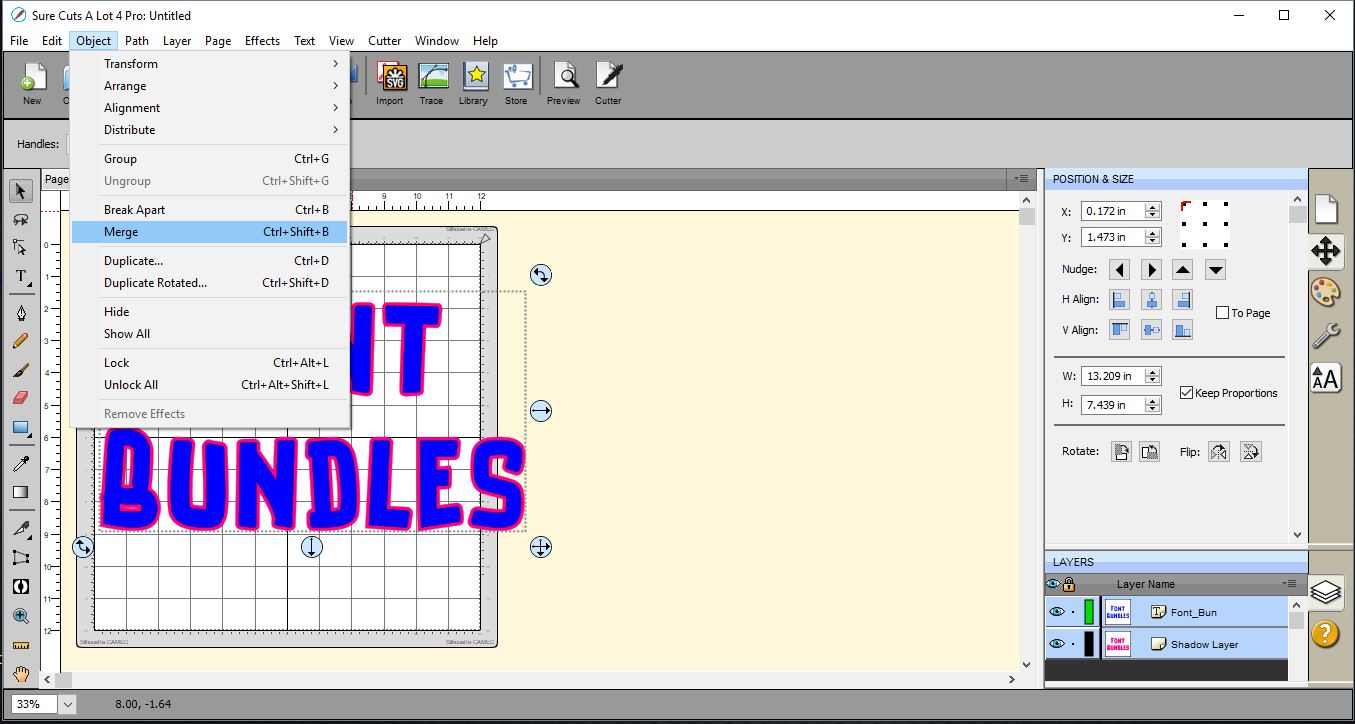 15- You can also create an outline effect with the shadow layer/offset. Select both the original text and the offset you created and go to object > merge.