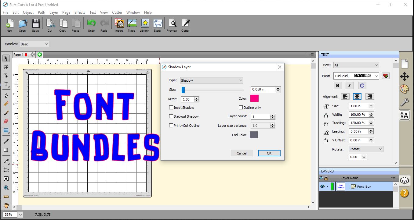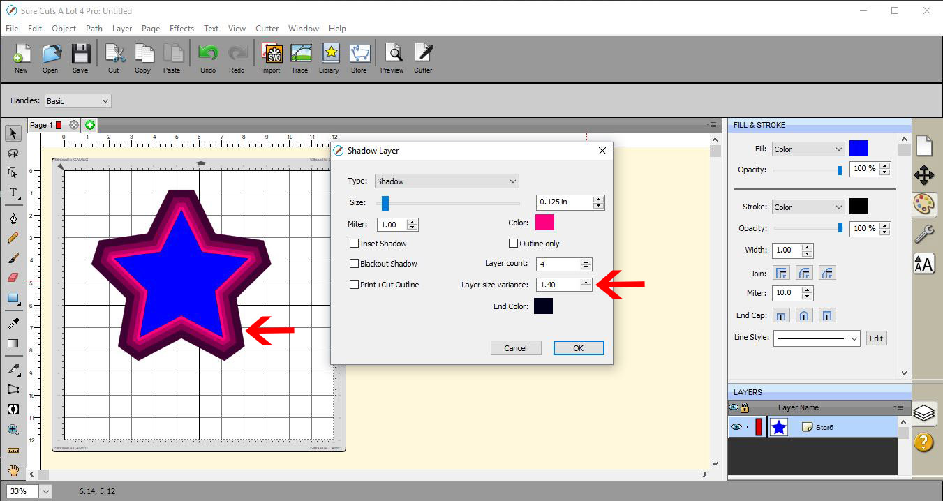 8- You can also increase the number of offsets you would like in the layer count. This is a great feature if you want to mat and layer several copies on a design.