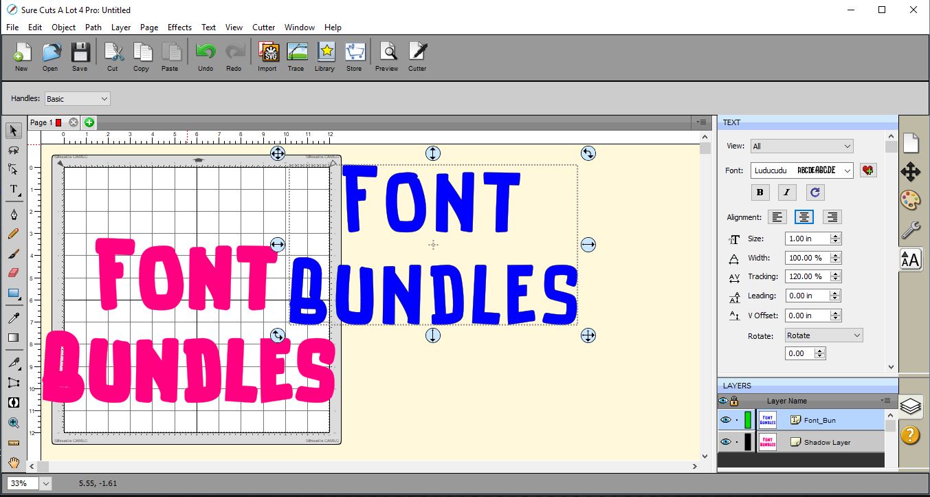 14- You can see that the shadow layer /offset is 2 separate cut designs now. you cna cut them in different colors and then layer them.