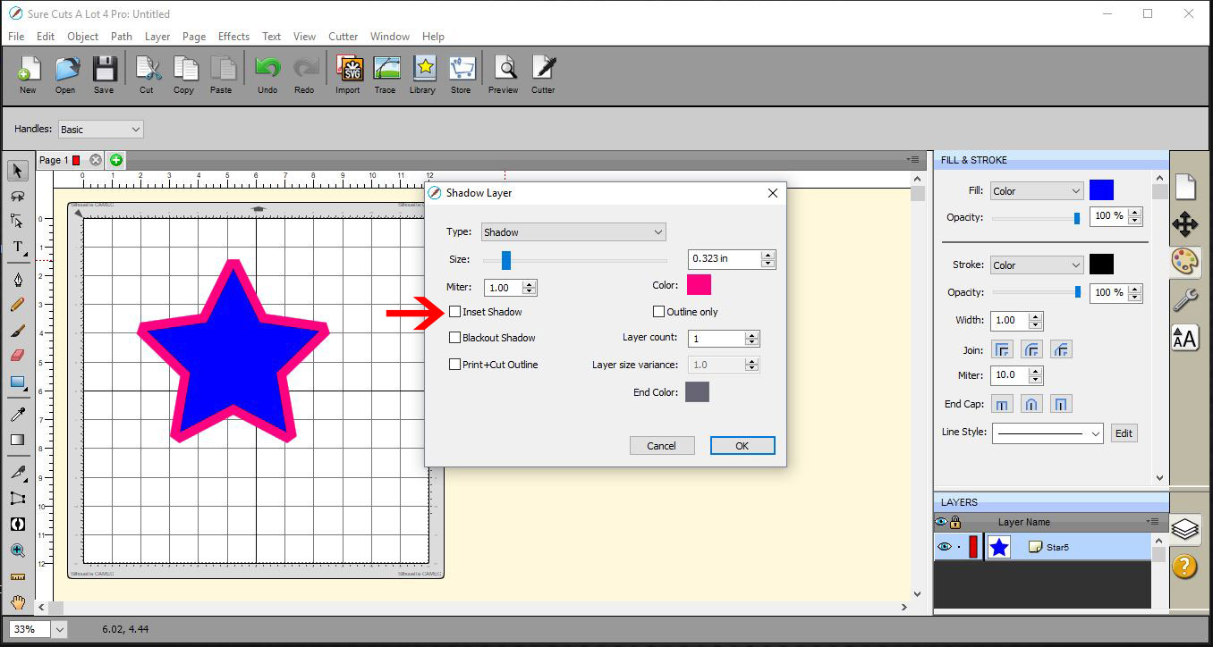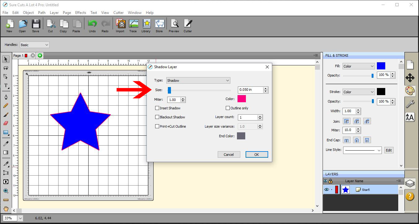 4- A new window will appear. This Shadow layer will create your offset. You can adjust the thickness of the offset by moving the slider.