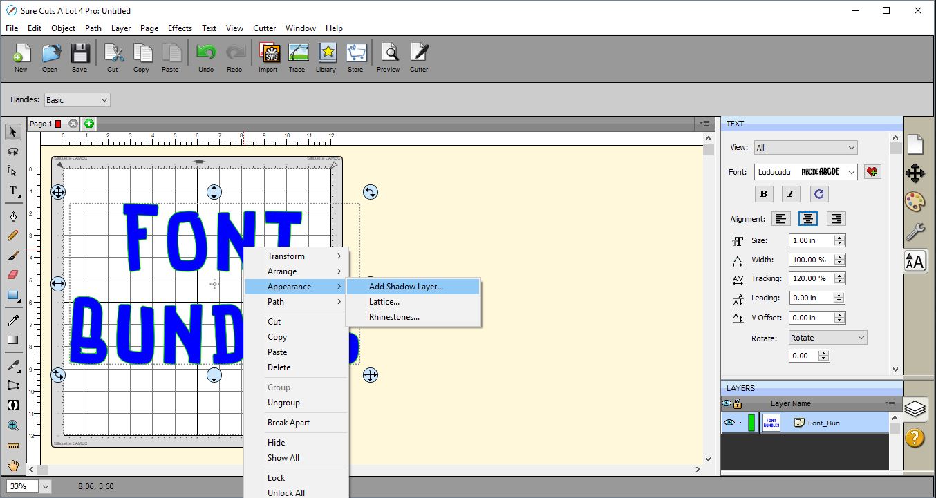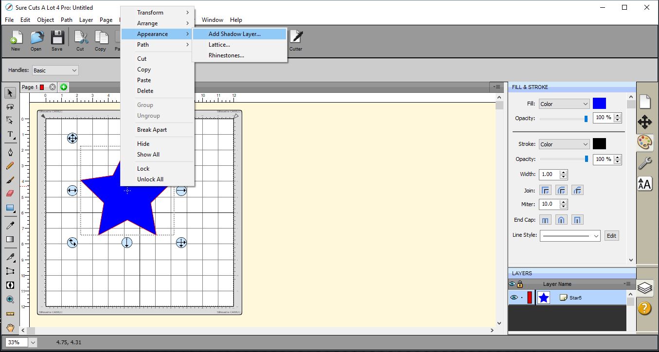 3- Select the design and right click on it. Select Appearance > Add shadow layer.