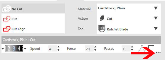 Depending on your software, you will either see three small dots next to the cut settings or the word More. Click on this to open the options for the Line Segment Overcut.