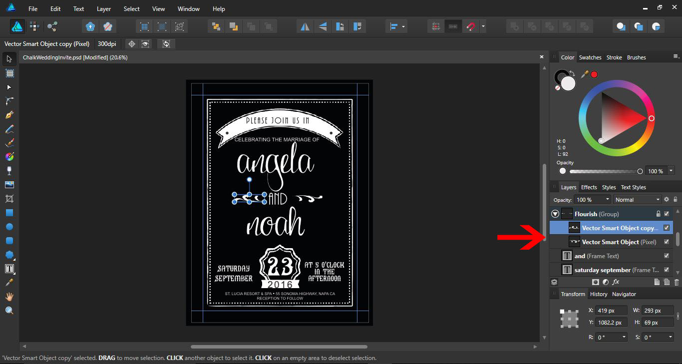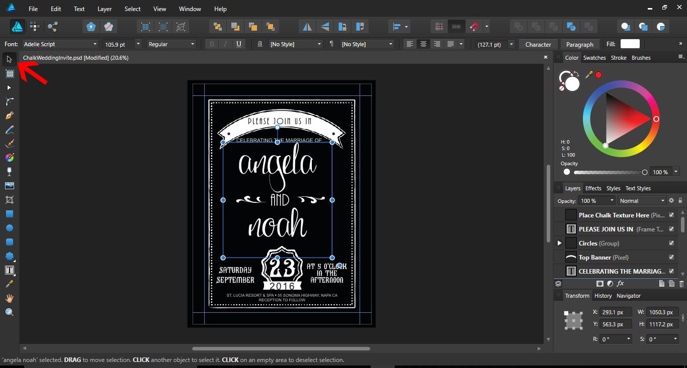 Affinity Designer’s Move Tool is an important feature for finding and selecting objects on layers. Being able to quickly locate and even isolate objects is a great way to work through a complex design.