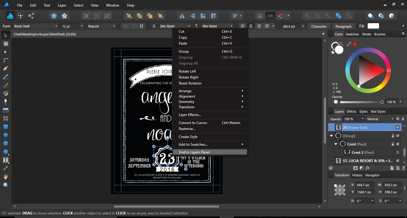 Selecting, Finding and Isolating Objects in Affinity Designer