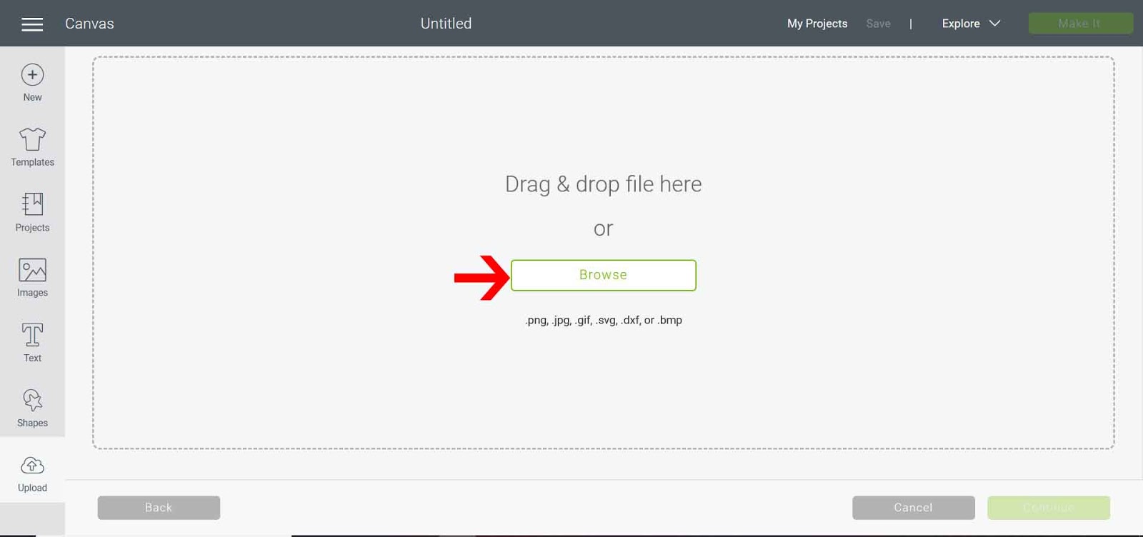 1- Open cricut design space. Click on new project.2- Click on the upload icon.3- Click on the upload icon.4- Click on browse.5- Select your SVG file. I am using a file from the Valentine's Day SVG Bundle by Craft House SVG.6- With SVG files they ...