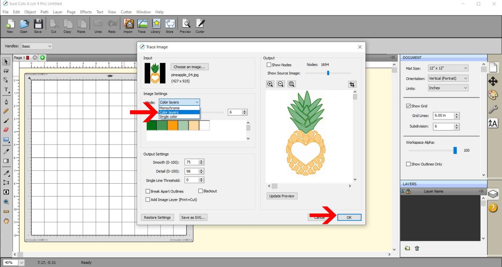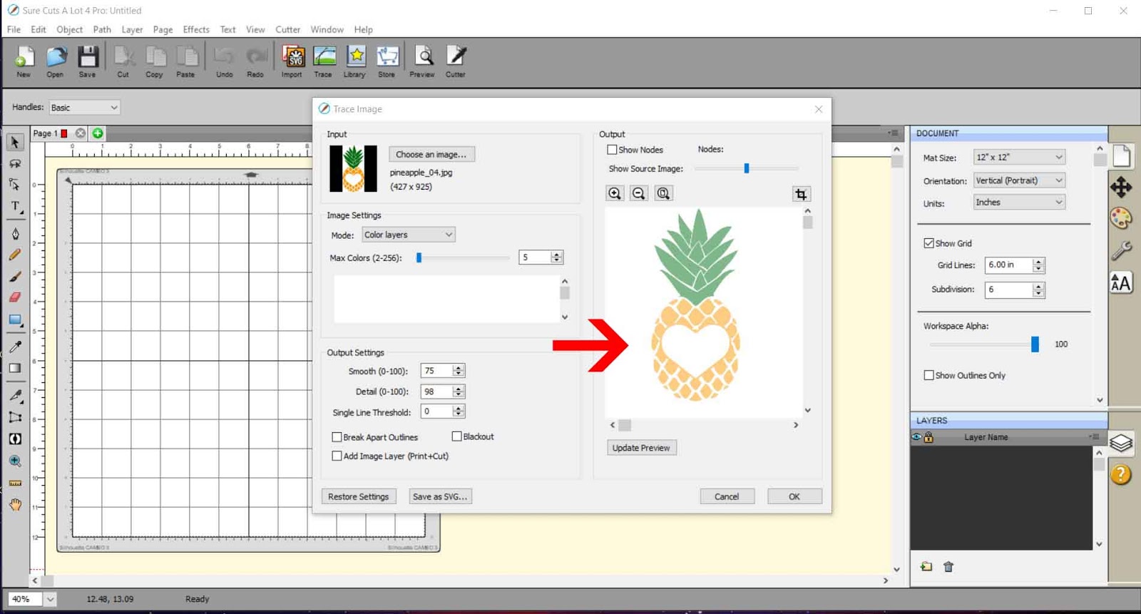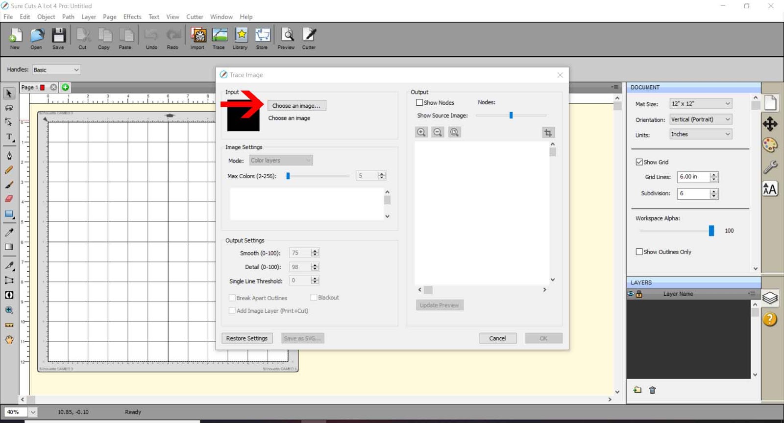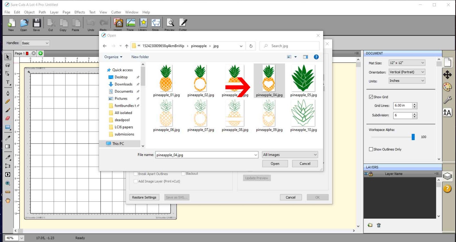 1- Open SCAL4. Select the import icon on the top.2- Select the design you would like to use on your stickers.3- Next go to the library, select a circle for the cut part of the file.4- Place the circle around the design.5- go to the document ...