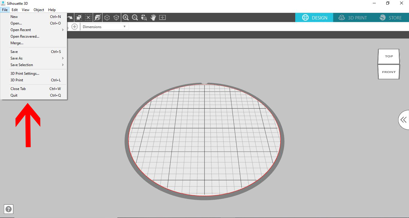 14- At the top you also have the 3D print drop down box and then the Silhouette design school icon.
