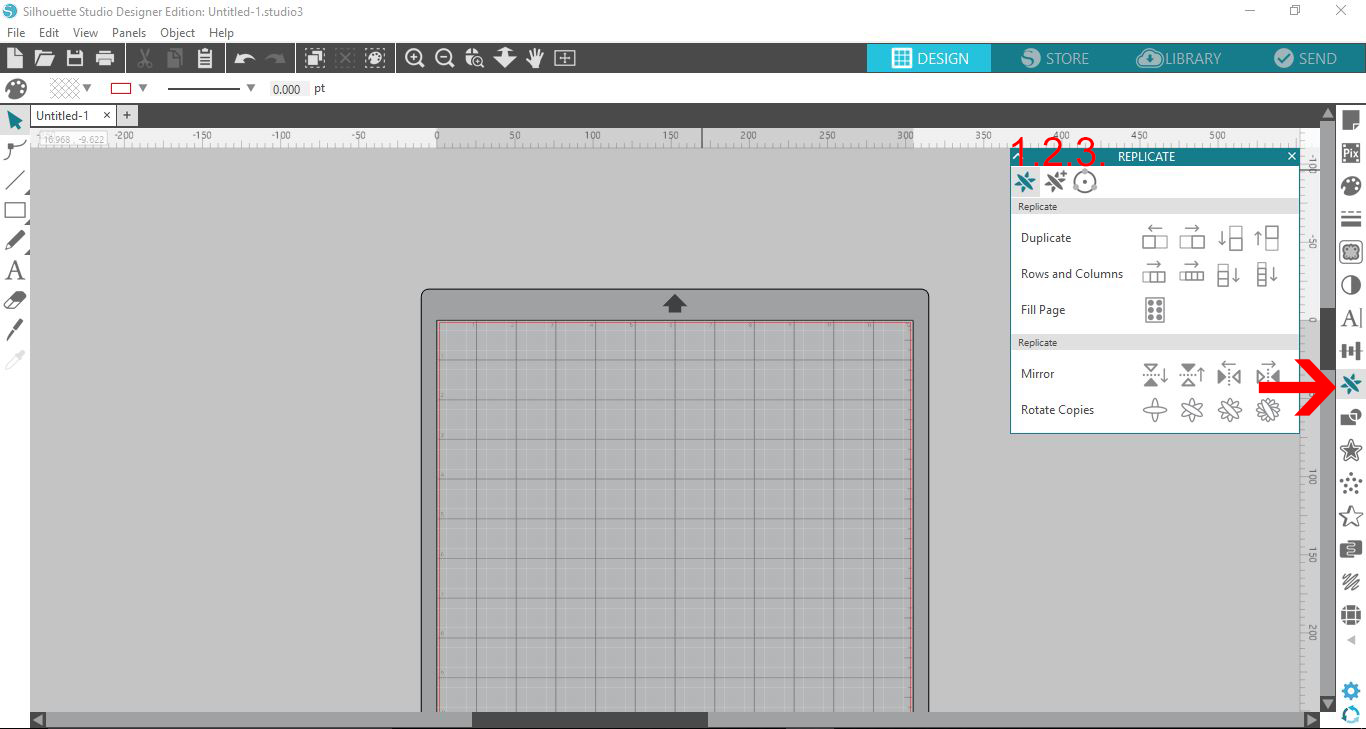 9- Replicate. The replicate option had not changed (1). You now have a separate icon for number of copies (2) and a new object to path option (3).