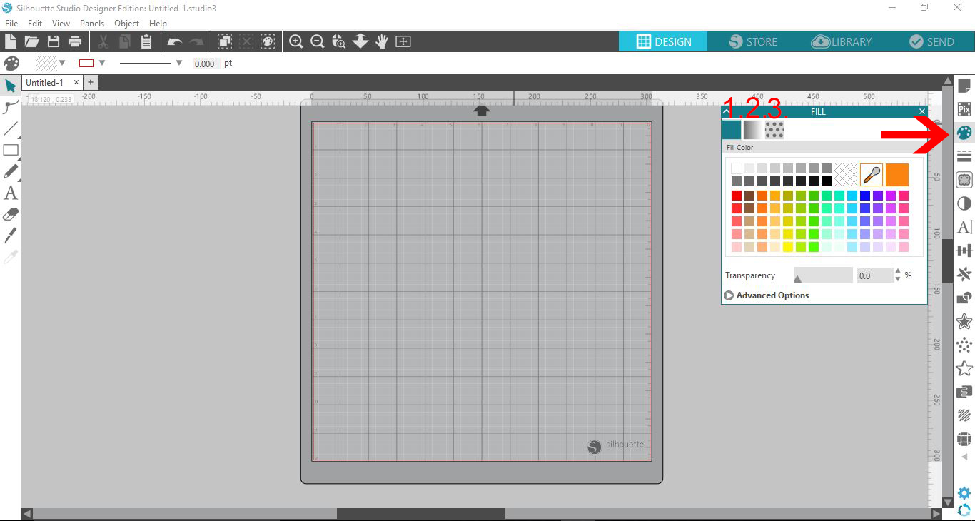3- Fill. The fill icon now includes fill colour (1) Fill gradient (2) and Fill pattern (3). The functions have not changed.