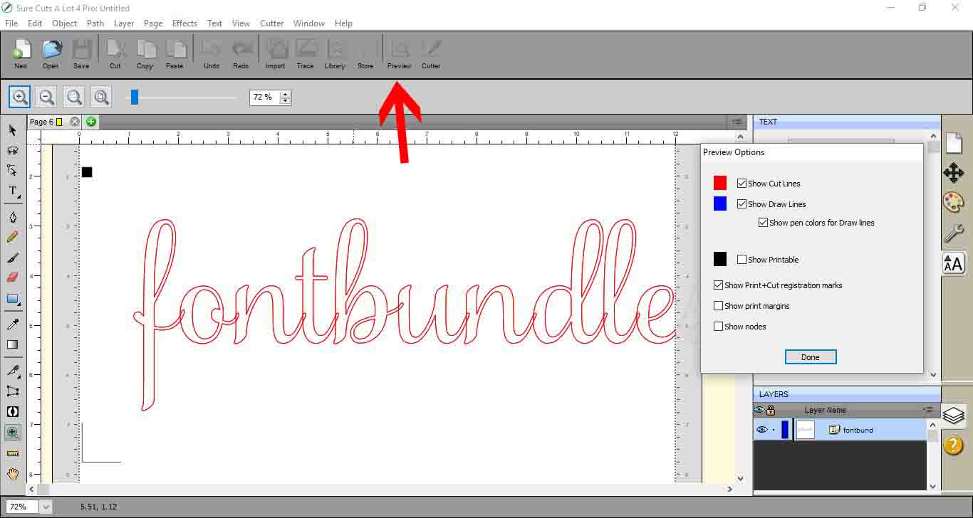 8- If you click on the preview icon you will see that each letter is overlapped.If we cut now each letter would cut separate.