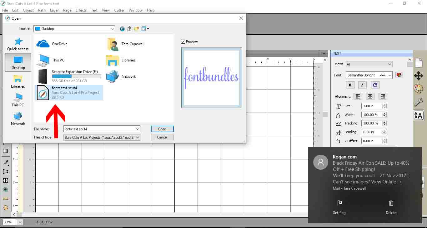 *Note - Sure Cuts a Lot 4 Pro used.1- Open SCAL4 software.2- Click on the text icon in the right toolbar.3- In the text toolbar the fist option is the view option. You have a drop down list. There is the choice of All fonts viewed, Favorite fonts ...